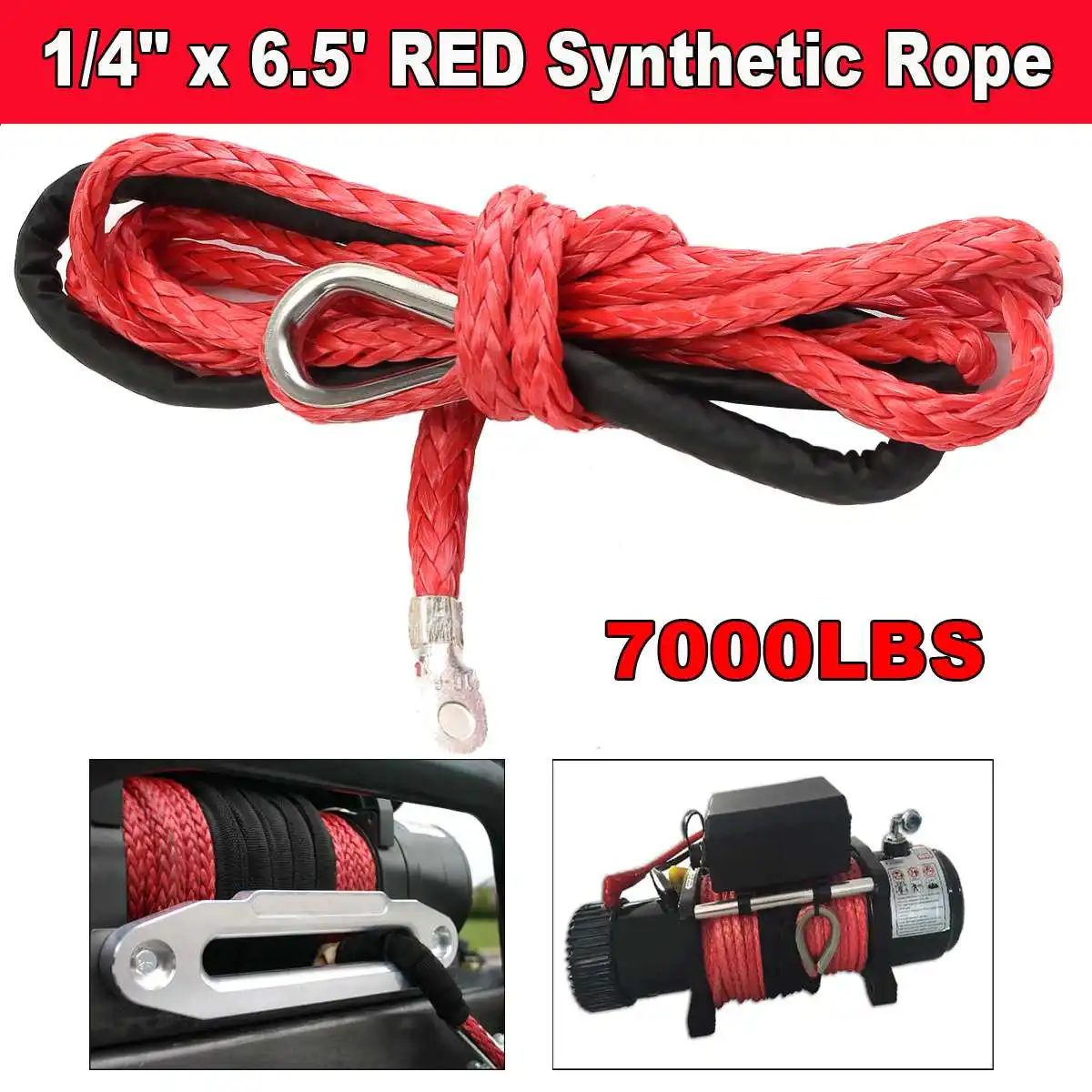 البحث عن معلوماتمعلومات اضافية 1/4 بوصة X 6.5 بوصة الأحمر الاصطناعية ونش خط كابل حبل 7000 رطلا لل المحراث
